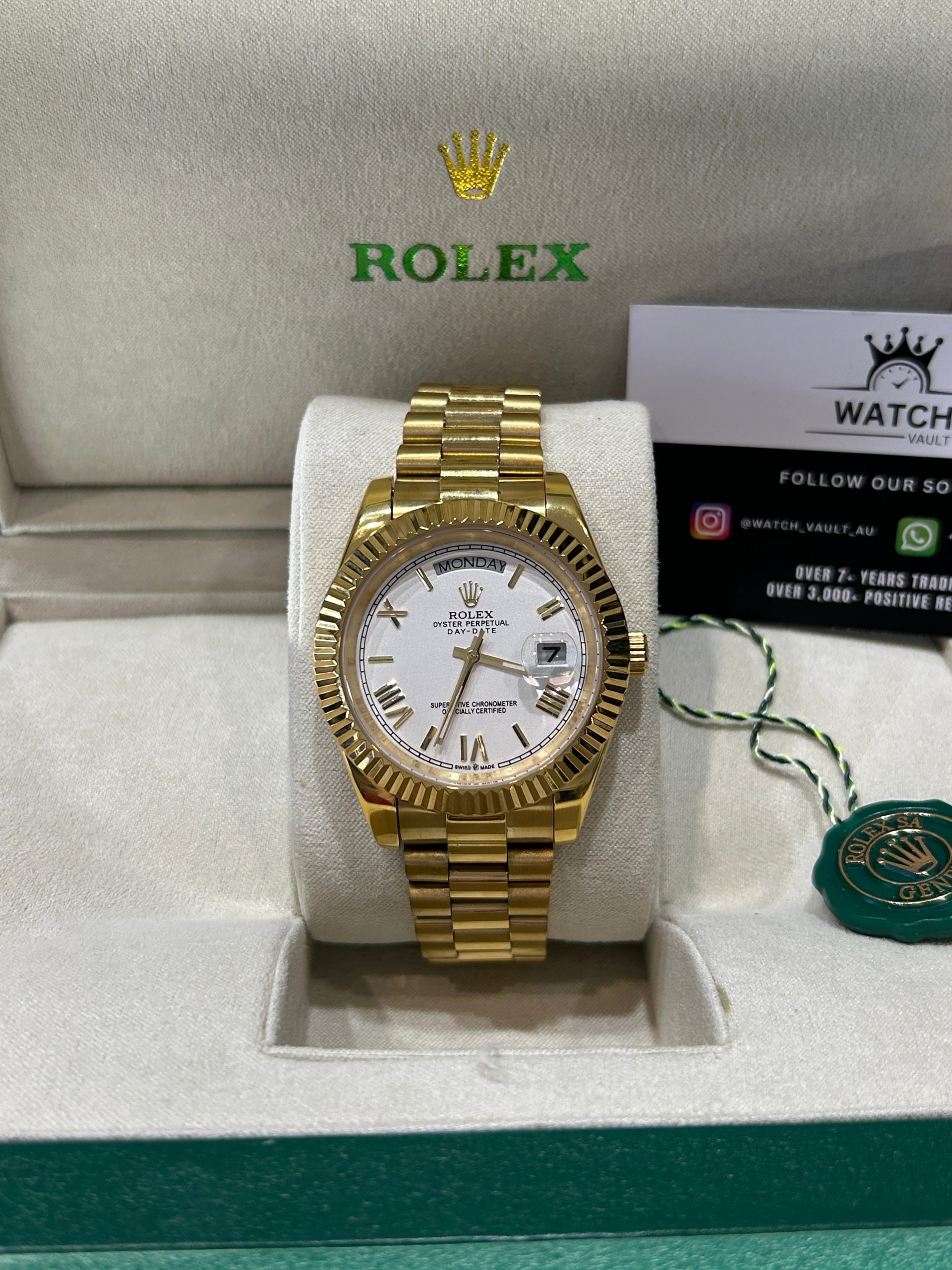 📦 Packaging Contents: • Rolex-style presentation box • International guarantee card (luxury inspired) • Leather document holder • 24-month warranty certificate (luxury inspired) • Microfibre polishing cloth • Rolex information booklet