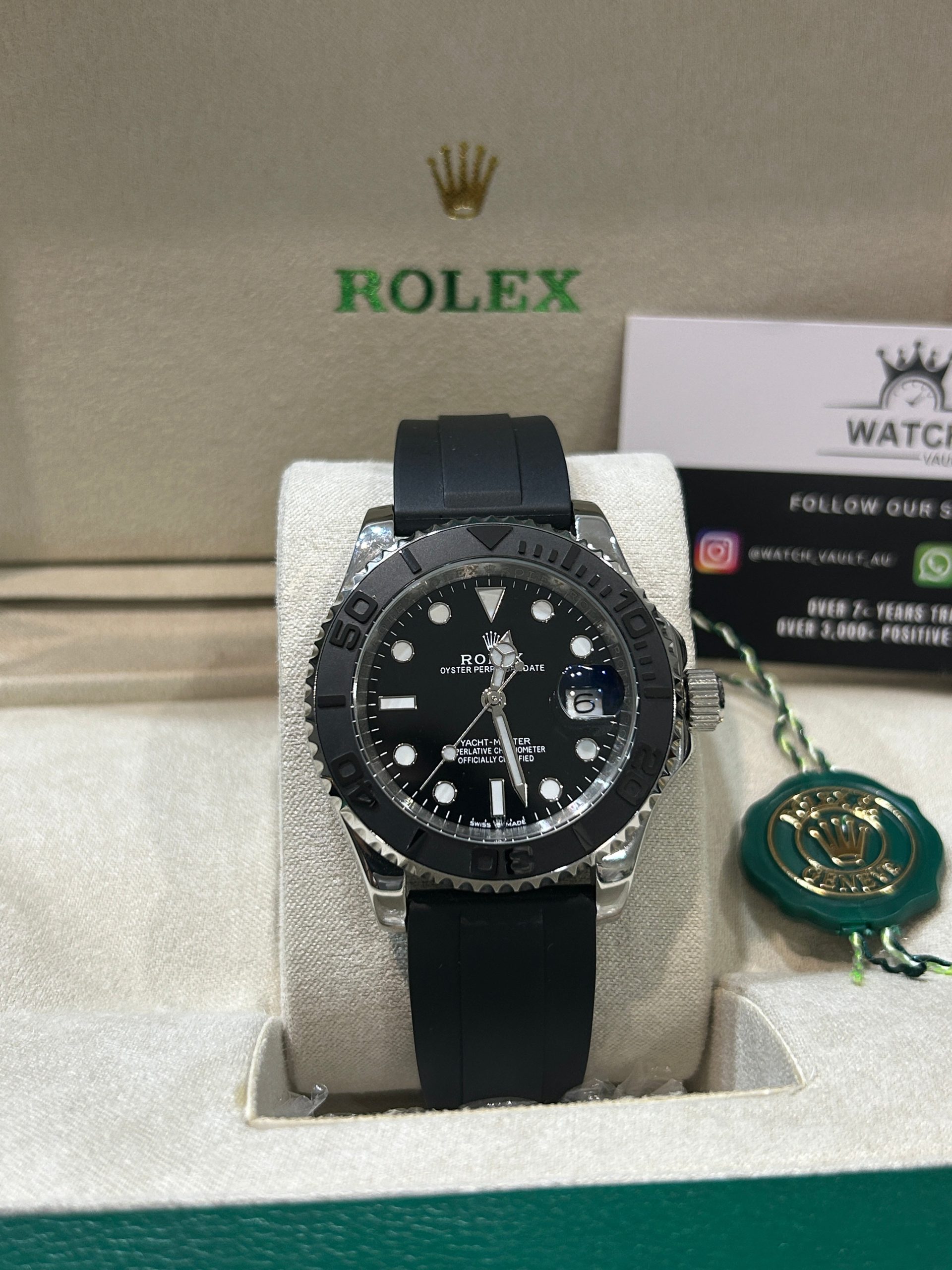 📦 Packaging Contents: • Rolex-style presentation box • International guarantee card (luxury inspired) • Leather document holder • 24-month warranty certificate (luxury inspired) • Microfibre polishing cloth • Rolex information booklet
